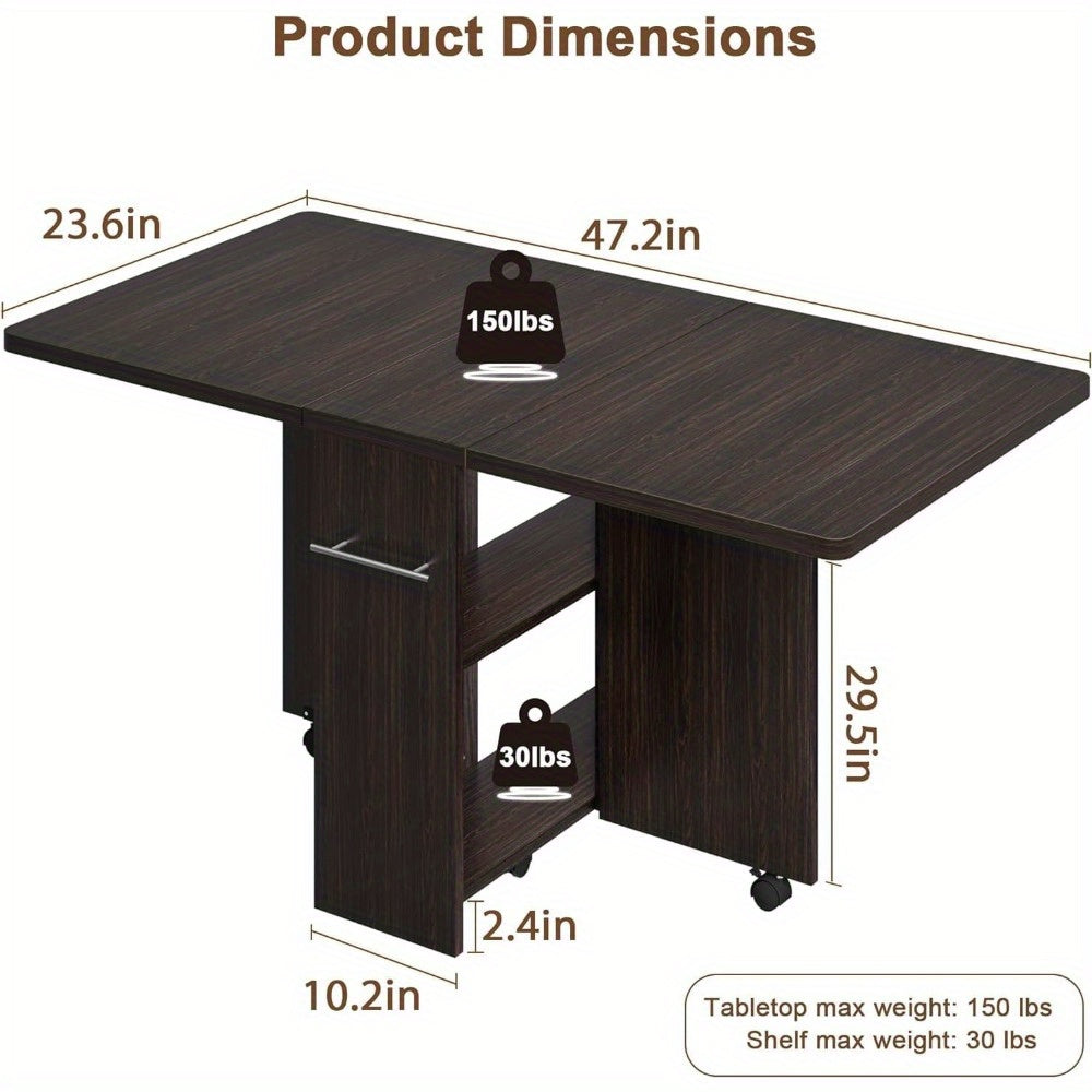 Folding Dining Table, Drop Leaf Dining Table with 6 Wheels and 2-Layer Storage Shelf, Space Saving Dining Table for Small Spaces